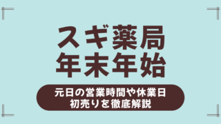 年末年始のスギ薬局は2026年も営業している?元旦や正月のお休み、年末年始営業時間、初売りや福袋の時期まで、前年傾向をもとに分かりやすく解説。行ってから困らないために、店舗差や事前確認のポイントもまとめました。